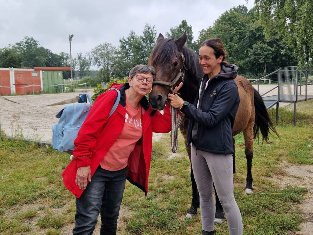Am 29. August hat eine Gruppe von Urania aktiv den Reitverein Integration in Bernau besucht, eine Pferdehaltungs- und Sportstätte mit Spezialisierung auf das therapeutische Reiten. Frau Andrea Harwardt, die Vorsitzende des Vereins und Chefin der Reitsportanlage berichtete uns eindrucksvoll über die Anfänge des Vereins bis zur heutigen Arbeit. Dabei wurde mit jedem Satz klar, welche Leidenschaft sie selbst und ihre Mitarbeiter mit Pferden verbindet und wie gerne sie diese Leidenschaft Kindern, Jugendlichen und Erwachsenen vermittelt. Andrea Harwardt ist staatlich geprüfte Physiotherapeutin mit Ausbildung zur Hippotherapeutin. Der Verein steht allen Menschen offen, nicht nur Menschen mit Behinderung. Die meisten von uns wußten gar nicht, über was für eine Perle Bernau mit diesem Verein verfügt. Neben dem therapeutischen Reite wird hier der Voltigiersport betrieben, und dies sehr erfolgreich. Reiter und Reiterinnen des Vereins bestreiten international erfolgreich Turniere und sind sogar im deutschen Bundeskader. Zahlreiche bunte Schleifen und Pokale zeugen von den Erfolgen. Diana Harwardt, die Tochter von Andrea Harwardt, und Peter Künne wurden 2024 Weltmeister der Voltigierer. Nach der beeindruckenden Bilanz bei leckerem Kaffee und Kuchen, den die Mutti von Andrea Harwardt selbst gebacken hatte, konnten wir noch beim therapeutischen Reiten in der großzügigen Reithalle zusehen. Es war ein wundervolles Erlebnis, dieser Besuch auf dem Reiterhof, das konnte auch nicht durch das schlechte Wetter getrübt werden. Am 20. September dieses Jahres ist von 10.00 bis 16.00 Uhr Tag der offenen Tür auf dem Reiterhof. Wir wünschen dem Team viele Besucher und weiterhin viel Erfolg bei ihrer Arbeit.