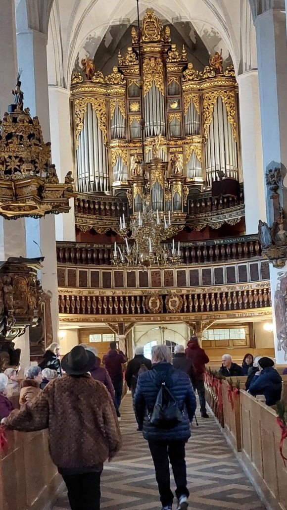Unser Tiel war die 700 Jahre alte Kirche St. Nicolai, eine der größten Kirchen Brandenburgs. Die prunkvolle Innenausstattung, von Gotik bis Barock, ist sehr beeindruckend. Dies ist z.B. an der Kanzel, den Logen, einer doppelten Wendeltreppe und der großen Donat-Orgel erkennbar.